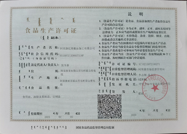 走進億隆 您當前的位置: 網(wǎng)站首頁 > 走進億隆 > 資質(zhì)榮譽 公司簡介 企業(yè)文化 領(lǐng)導(dǎo)致辭 資質(zhì)榮譽 生產(chǎn)許可證副本 食品生產(chǎn)許可品種明細表 科技示范性中小企業(yè) 呼倫貝爾龍頭企業(yè) “山里屯”特許經(jīng)銷商 冷榨大豆油(三級)證書 共9條記錄 當前為第1頁/共2頁上一頁12下一頁